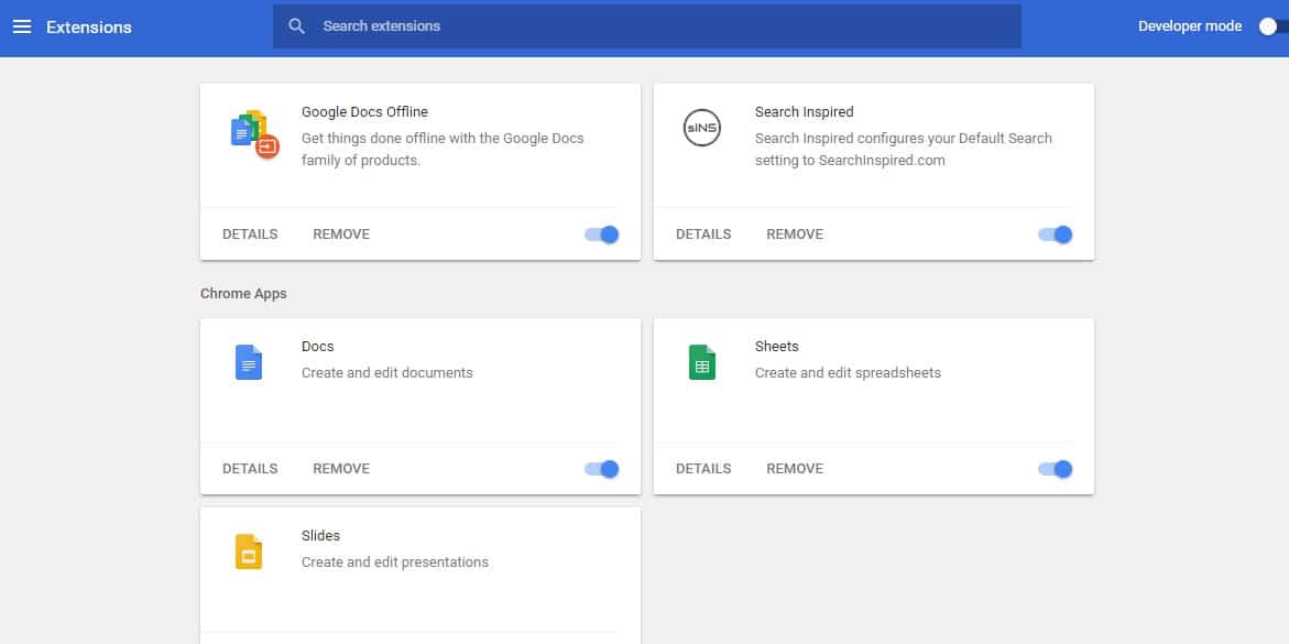 Disable extension